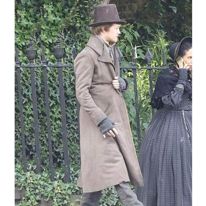 Step back in time with timeless elegance in the A Christmas Carol Brekke Fagerlund Karl Trench Coat. Inspired by the richly atmospheric 2019 adaptation of Charles Dickens' classic tale, this coat channels 18th-century sophistication through modern craftsmanship. Worn by Joe Alwyn as Brekke Fagerlund (Karl), this piece captures the brooding style and vintage charm of a character navigating Victorian-era London.