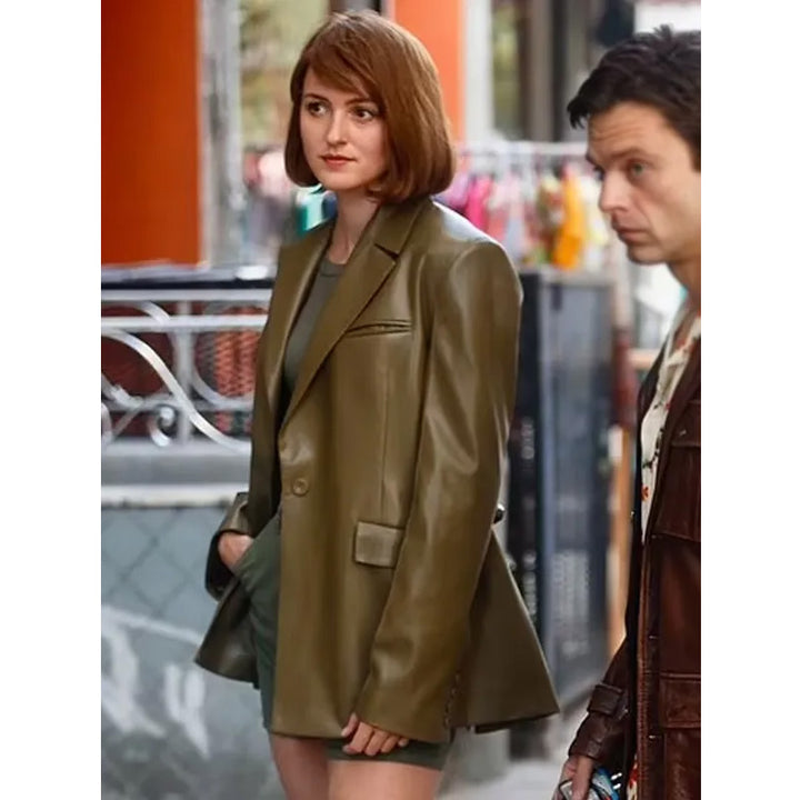 Step into bold self-expression with the A Different Man Renate Reinsve Green Leather Blazer a striking piece that speaks volumes before you even say a word. Inspired by the 2024 film A Different Man, this green leather blazer captures the evolution and inner strength of Renate Reinsve’s character, making it the perfect choice for those who aren’t afraid to stand out.