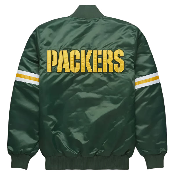 Discover the ultimate combination of style and comfort with the Green Bay Packers Green Jacket, exclusively from The Jacket Seller. This branded jacket is expertly crafted from premium satin material, paired with a smooth quilted inner lining for exceptional comfort and durability.
