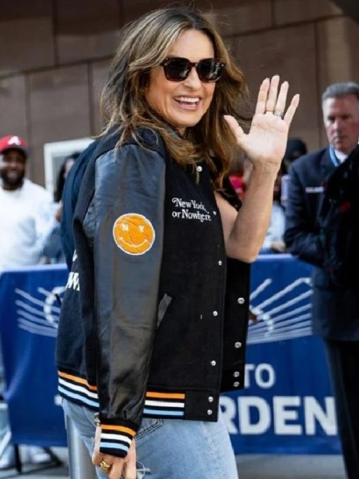 Turn heads like a courtside icon with the Knicks Playoff Game Mariska Hargitay Jacket, inspired by the legendary actress’s standout appearance during Game 3 of the Celtics vs. Knicks Playoffs. Known for her powerful presence and effortless style, Mariska brought a bold, varsity vibe to the NBA spotlight and now, you can channel that same energy.