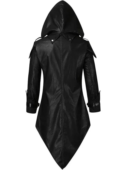 Stand out this Halloween with the Premium Men’s Halloween Steampunk Coat. Crafted from 100% genuine leather with a soft viscose lining, this black trench coat combines bold style with lasting comfort. Featuring a zipper-over belted closure, removable hooded shirt collar, and full-length sleeves with belted cuffs, it’s designed to make a dramatic, fashion-forward statement while ensuring durability and a perfect fit.