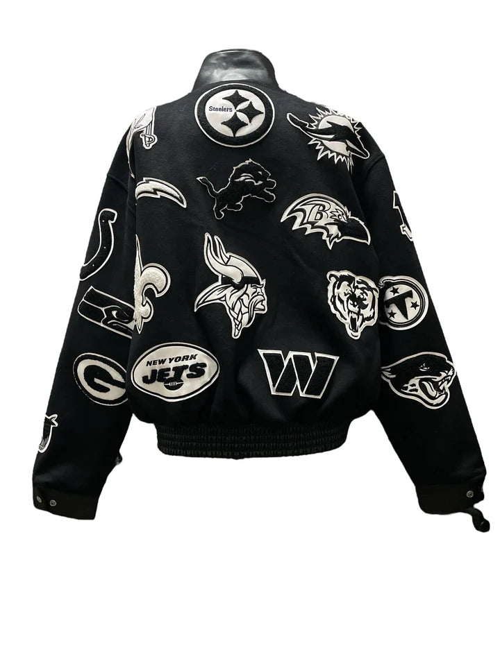 NFL Collage Wool & Leather Jacket Black & White