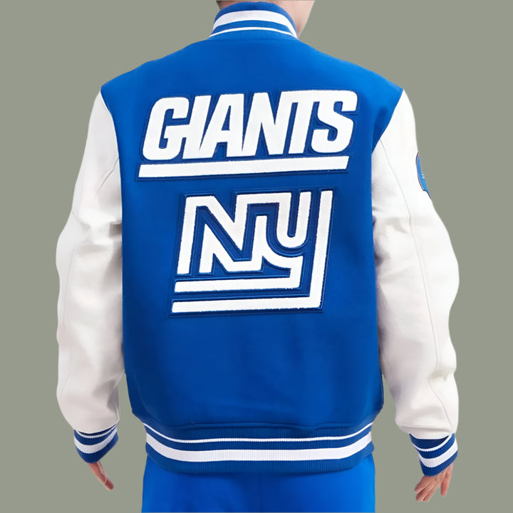 Stay warm and stylish in the NFL NY Giants Varsity Jacket, designed for both men and women. This jacket features the iconic Giants logo and colors, making it perfect for showing off your team pride. With a classic varsity jacket design, this piece is a must-have for any football fan.