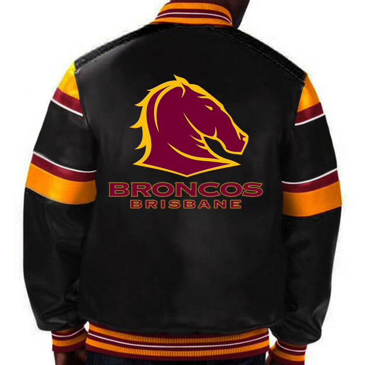 Buy NRL Brisbane Leather Jacket embodies the essence of the Brisbane Broncos within the National Rugby League (NRL), harmonizing rugged sophistication with an unwavering dedication to the team.