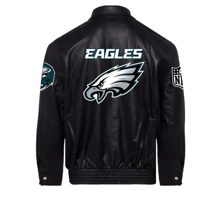 Experience unbeatable style and comfort with our PHILADELPHIA EAGLES full leather jacket in black. This expertly crafted jacket features the iconic emblem on the front, showcasing your team pride. Made with high-quality leather, this jacket will keep you warm and stylish all season long.