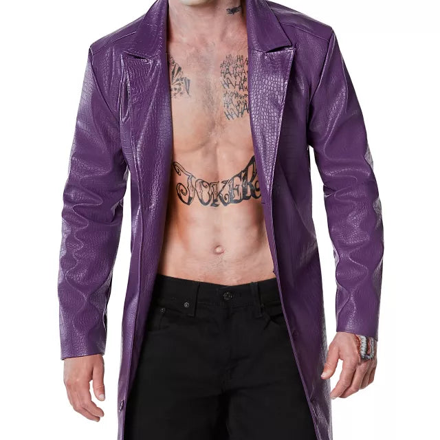 Channel Gotham’s most infamous villain with this long purple leather coat inspired by Jared Leto’s electrifying Joker in Suicide Squad. Perfect for Halloween, cosplay, comic cons, or any collector’s display, it delivers the Joker’s signature chaos and fearless flair.