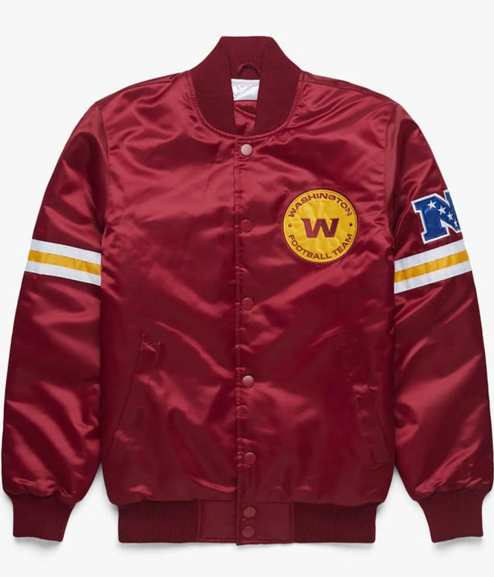 Showcase your loyalty in bold fashion with The Pick and Roll Washington Commanders Satin Jacket, a premium outerwear piece inspired by the spirit and legacy of the iconic NFL team. This jacket delivers a perfect balance of team pride, comfort, and style, making it an essential addition to any true fan’s wardrobe.