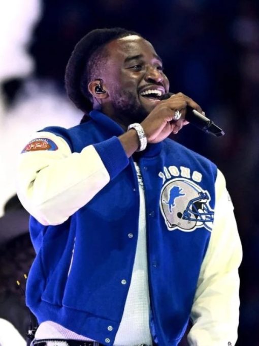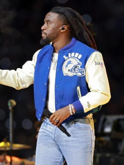 Step into the spotlight with the Shaboozey Detroit Lions Jacket, a bold blend of team spirit and celebrity flair. Worn by rapper and style icon Shaboozey during the Detroit Lions Thanksgiving Halftime Show, this statement piece embodies the perfect fusion of fashion, fandom, and performance.