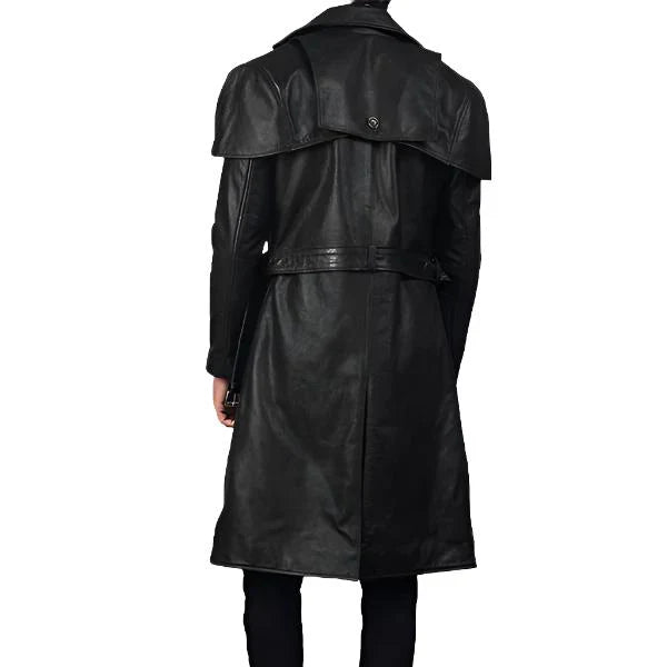 This black leather trench coat delivers understated elegance with a powerful, refined presence. Crafted from deep black genuine leather, it offers a versatile foundation that pairs seamlessly with nearly any wardrobe while projecting sophistication and confidence. The classic trench silhouette defined by structured tailoring, functional detailing, and balanced proportions transcends passing trends, ensuring its relevance for decades to come.
