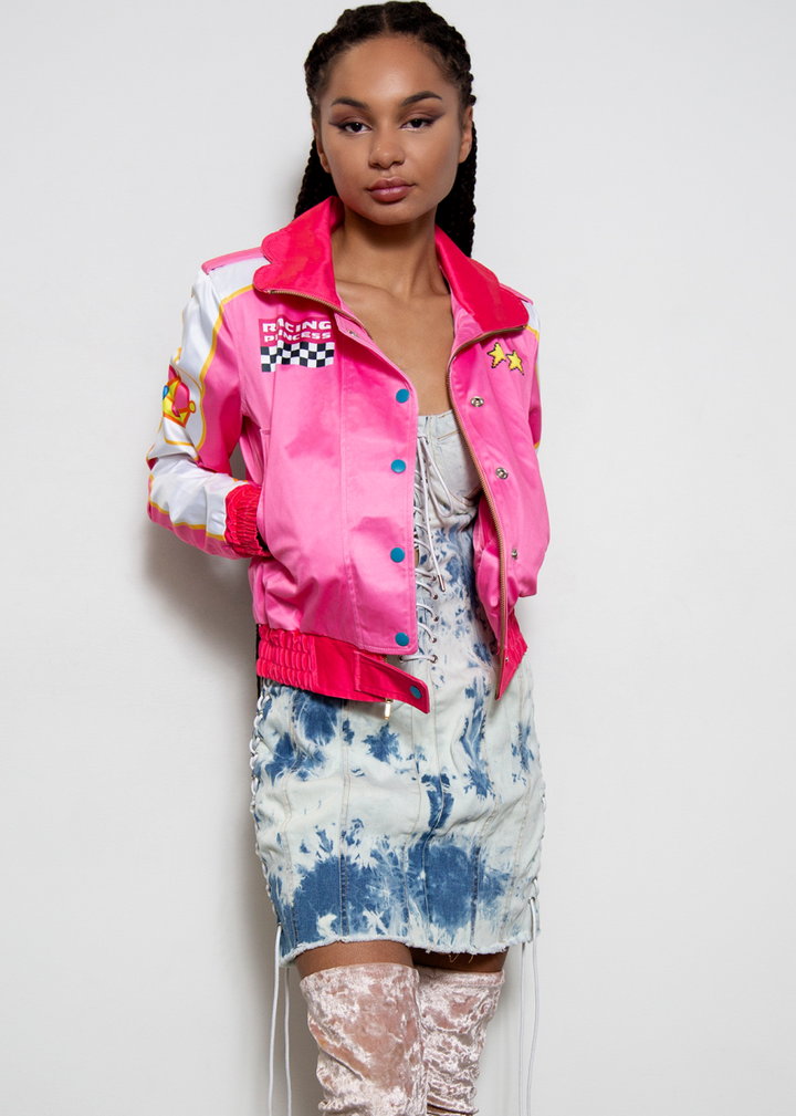 The Women’s Pink Racing Princess Bomber Jacket offers a refined blend of sport-inspired design and feminine elegance. Crafted with attention to detail, this jacket features a vibrant pink hue and a tailored bomber silhouette that ensures both comfort and style. Made from quality materials, it provides durability and versatility for everyday wear or standout looks. Perfect for those seeking a combination of classic racing aesthetics with a contemporary, chic twist.