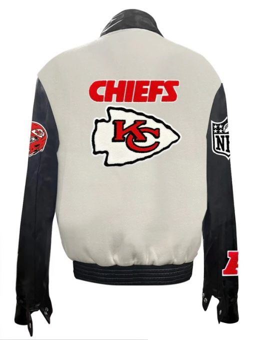 Travis Kelce Kansas City Chiefs White and Black Varsity Bomber Jacket